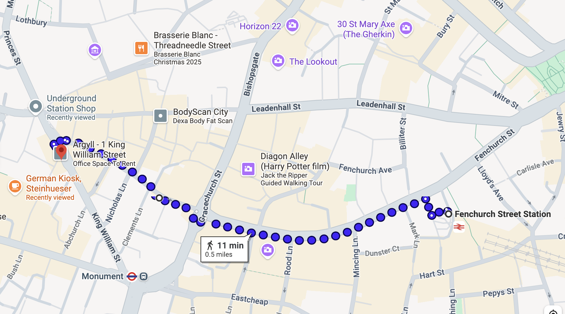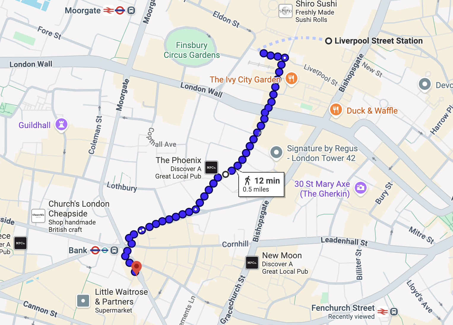 Slight left to stay on Fenchurch St (79 ft)